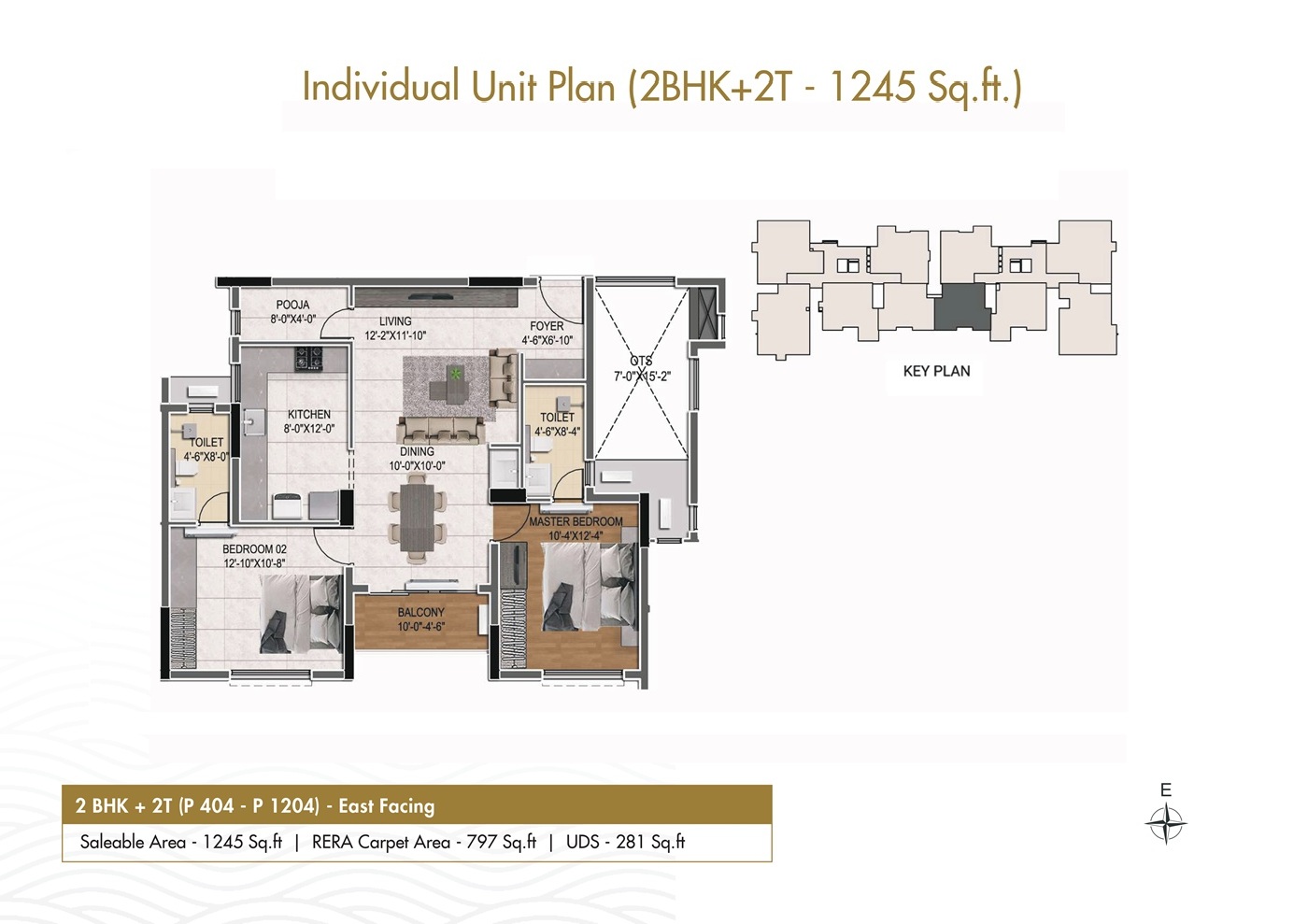 | 2 BHK + 2T | 1245 - 1248 Sq Ft | ₹ 1.03 Cr Onwards | |