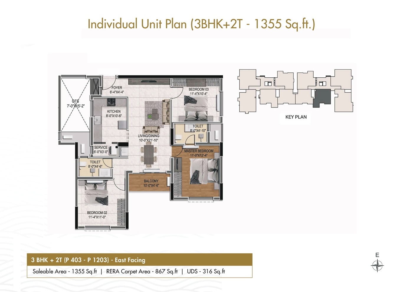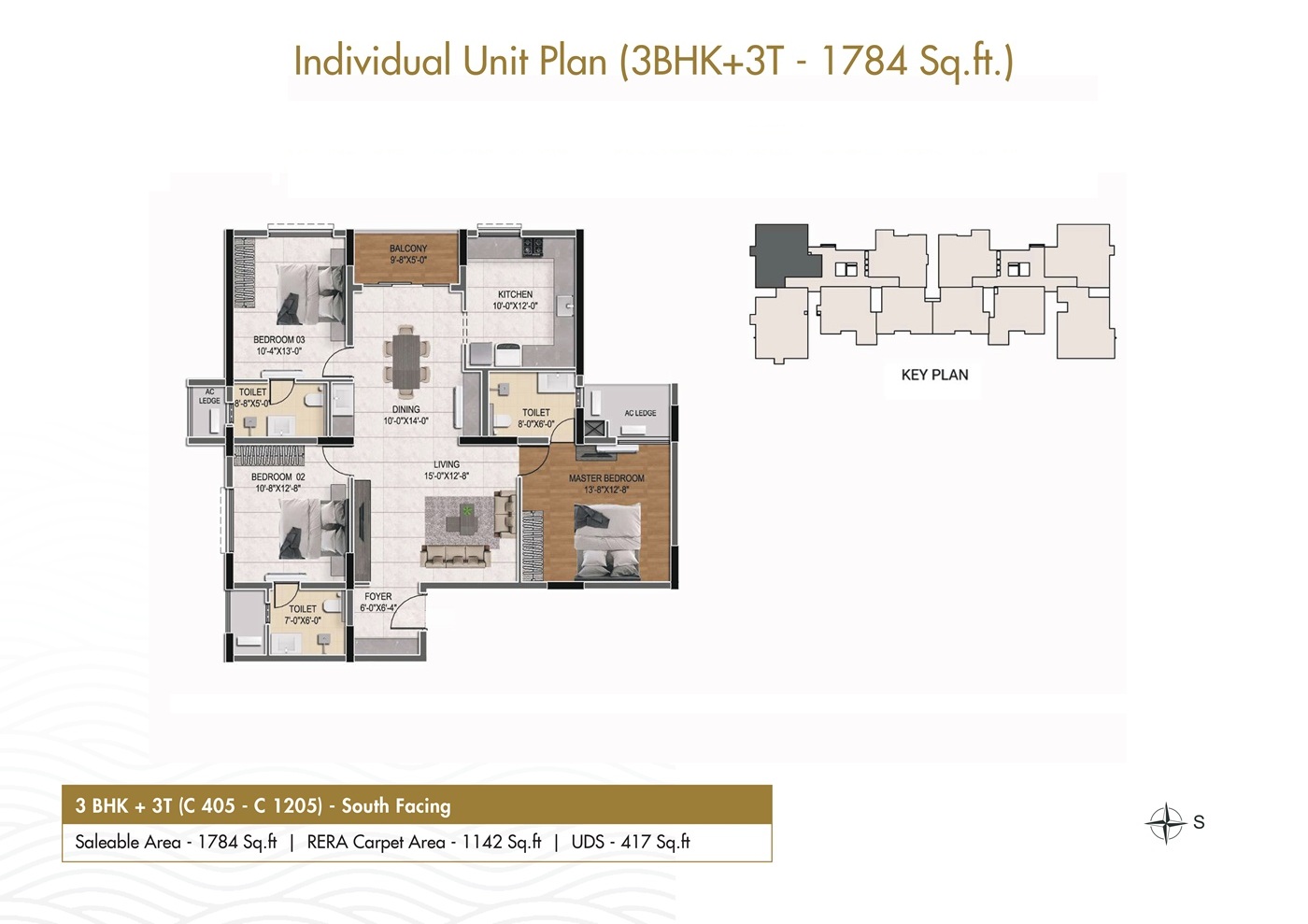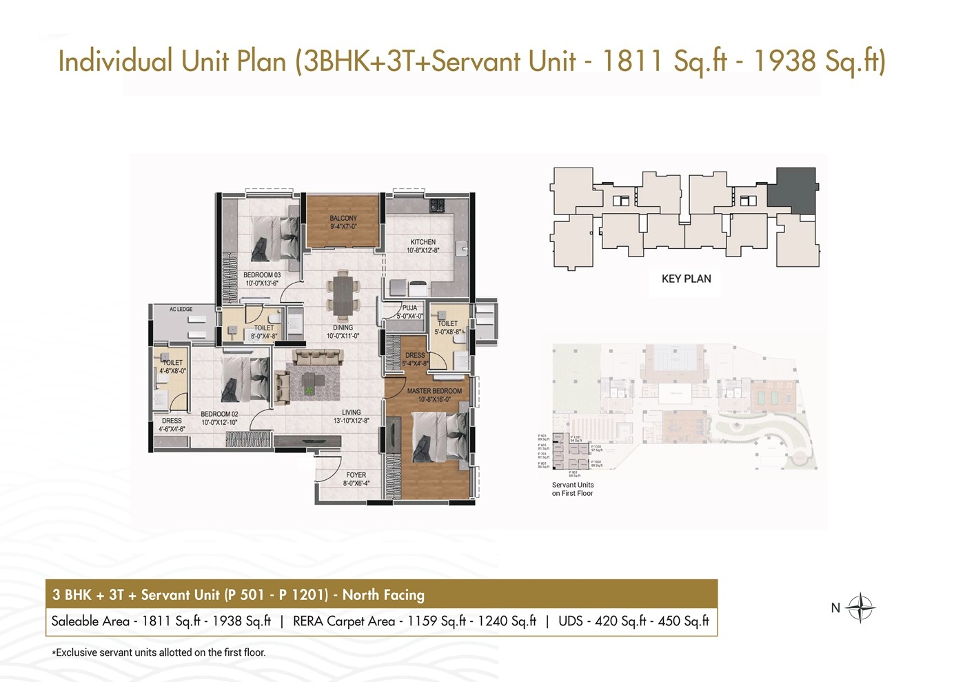 | 3 BHK + 3T ( Without Servant Unit) | 1777 - 1855 Sq Ft | ₹ 1.47 Onwards | |